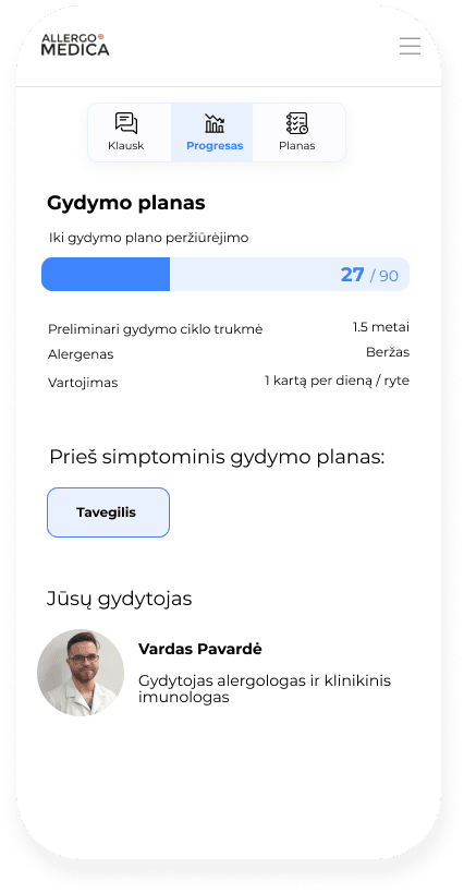 Gauk personalizuotą alergijos gydymą specifine alergenų imunoterapija su gydytojo priežiūra neišeinant iš namų.