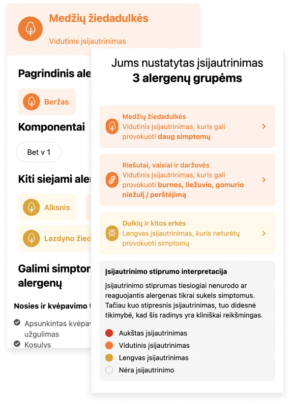 Kitų gamintojų tyrimų sudėtis pritaikyta visam pasauliui, todėl sudėtyje rasite alergenų, kurių mūsų regione nėra. Mes atrinkome 98 dažniausiai mūsų regione pasitaikantį alergeną, kurie sukelia apie 95% įsijautrinimo atvejų. Taip pat tyrime yra išsamus įkvepiamų alergenų molekulinis profilis, kuris leidžia išsamiai įvertinti šią dažniausiai pasitaikančią alergijų rūšį. Tad jei tiriatės pirmą kartą ar norite detaliau suprasti įkvepiamų alergenų sukeliamą alergiją šio tyrimo jums pilnai užteks.
